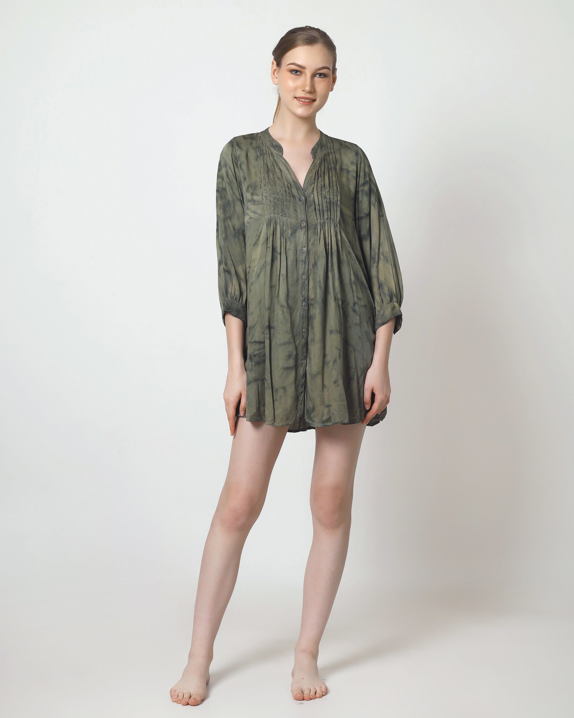 Aurora is a versatile piece that can be worn either as a top or a short dress, depending on your needs. Its design ensures maximum comfort, featuring elegant pleated details at the bust and buttons that add both a stylish and practical touch. Suitable for various occasions, Aurora offers flexibility and a chic look all in one.