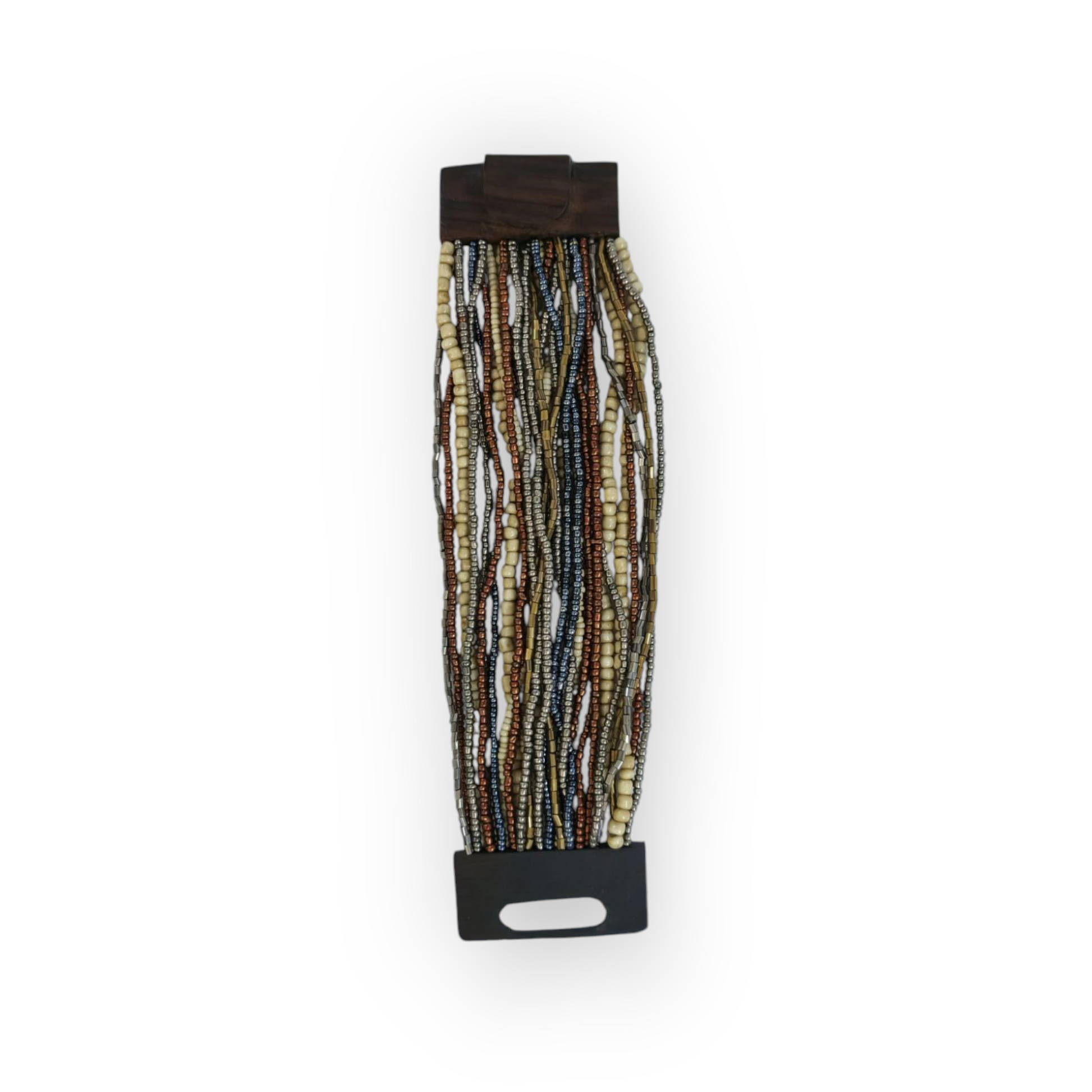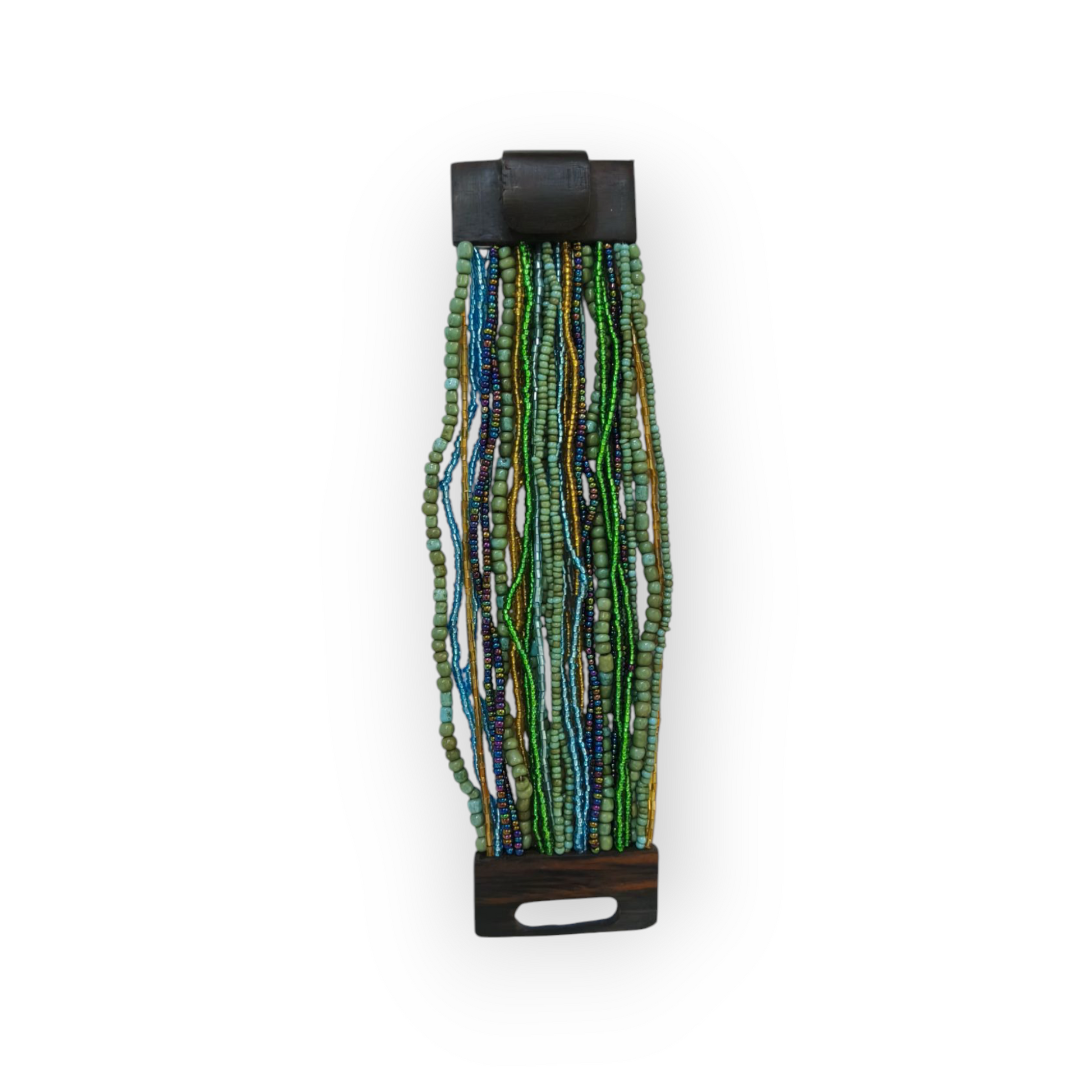 Elevate your style with Fluorita, a layered bracelet featuring carefully crafted beadwork and a unique wood finish. The intricate multi-layer design adds depth and texture, while the wood accents bring a touch of nature to your look. Upgrade your accessories game with Fluorita.